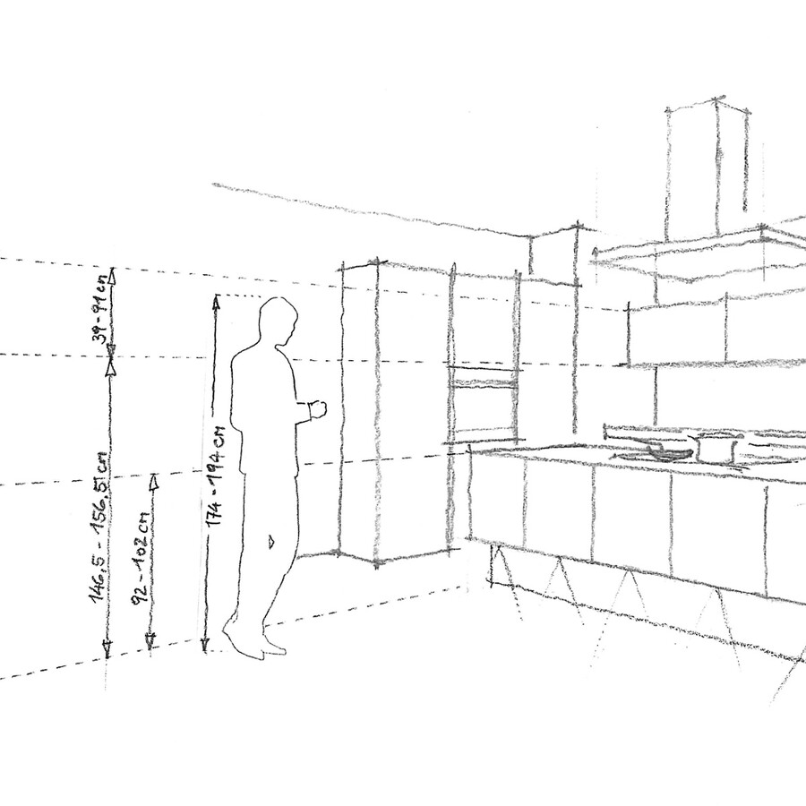 Kleine Binsenweisheit am Rande: Wir sind alle unterschiedlich groß. Große Erkenntnis im Mittelpunkt: Warum sind dann alle Küchenoberflächen üblicherweise gleich hoch?